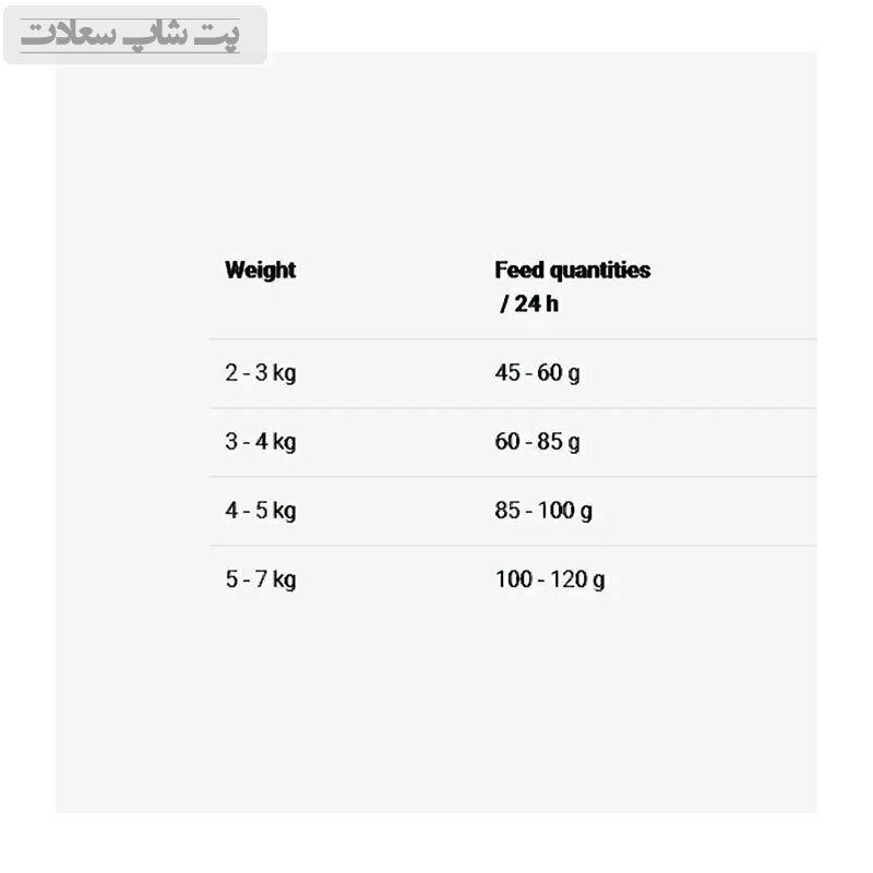 • حاوی چربی کم و پروتئین بالای حیوانی (86%) برای ایجاد حس سیری بیشتر